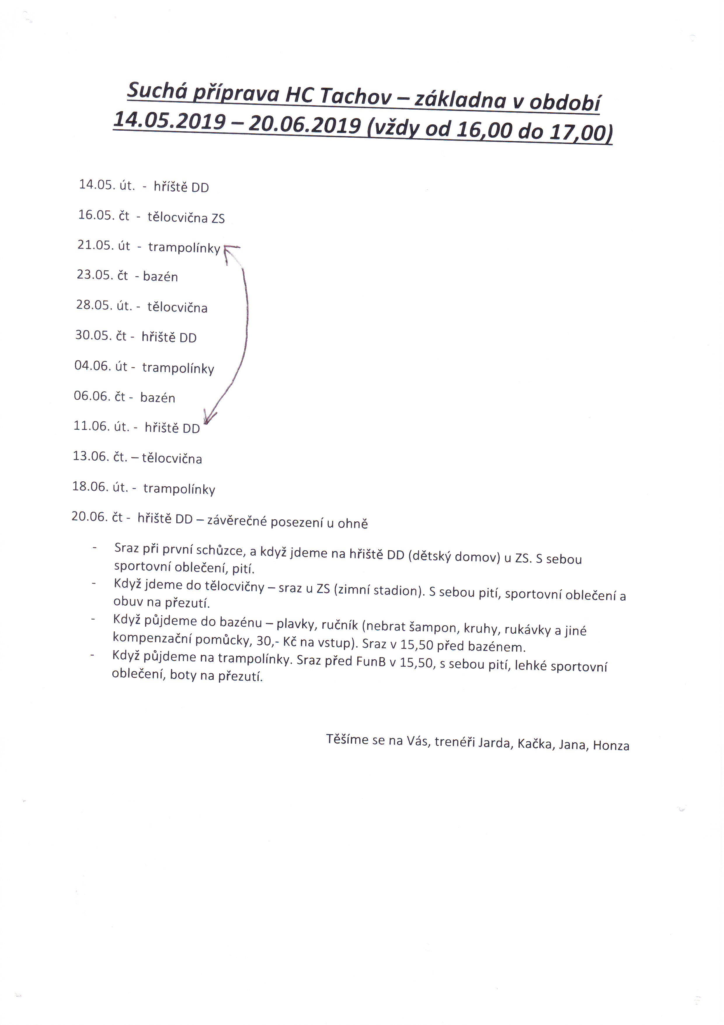 Seznam hráčů, dle kategorii a časový harmonogram letní přípravy.